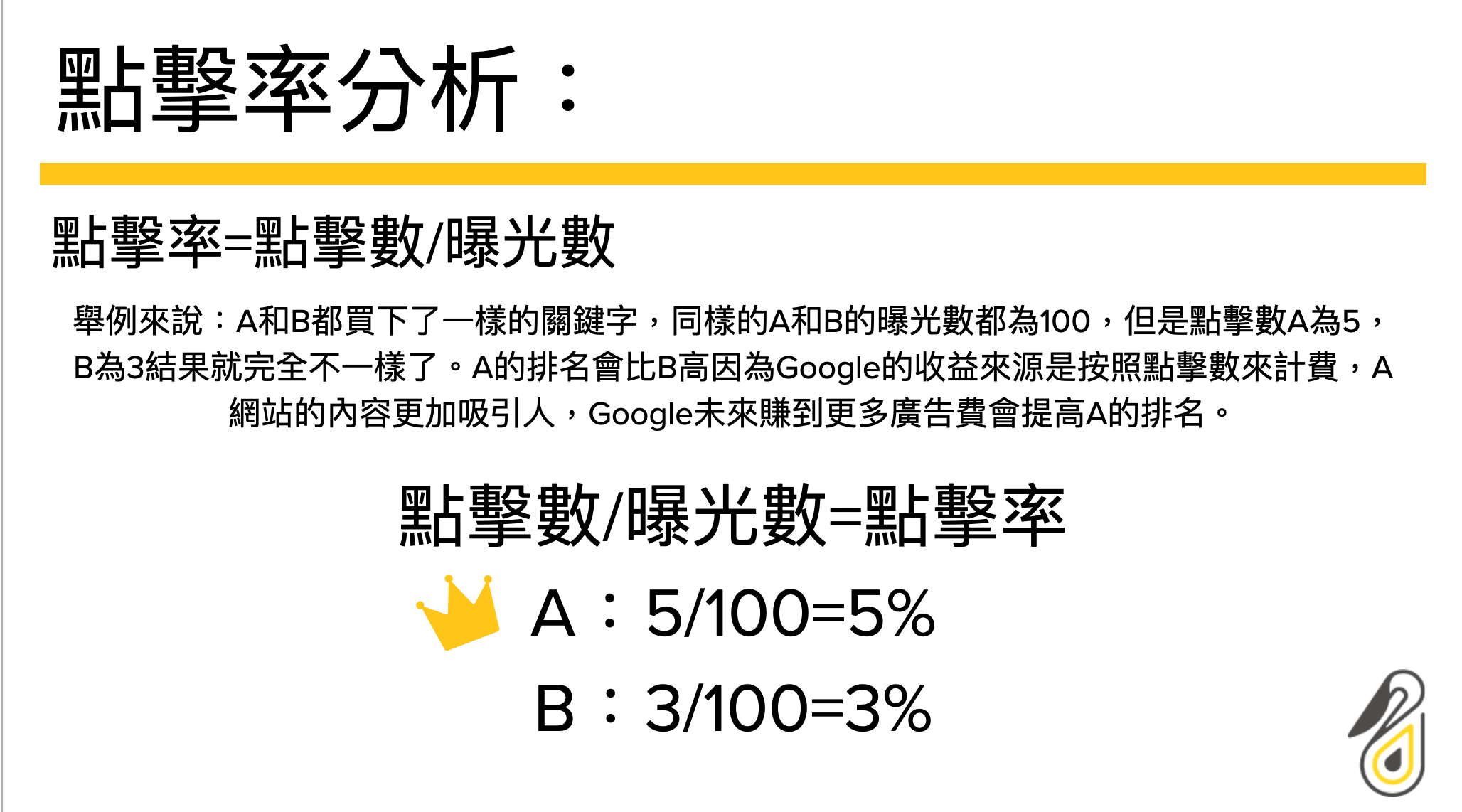 品質分數我們分3點來講:1.點擊率2.廣告關聯性3.達到網頁品質我們一點一點來看!