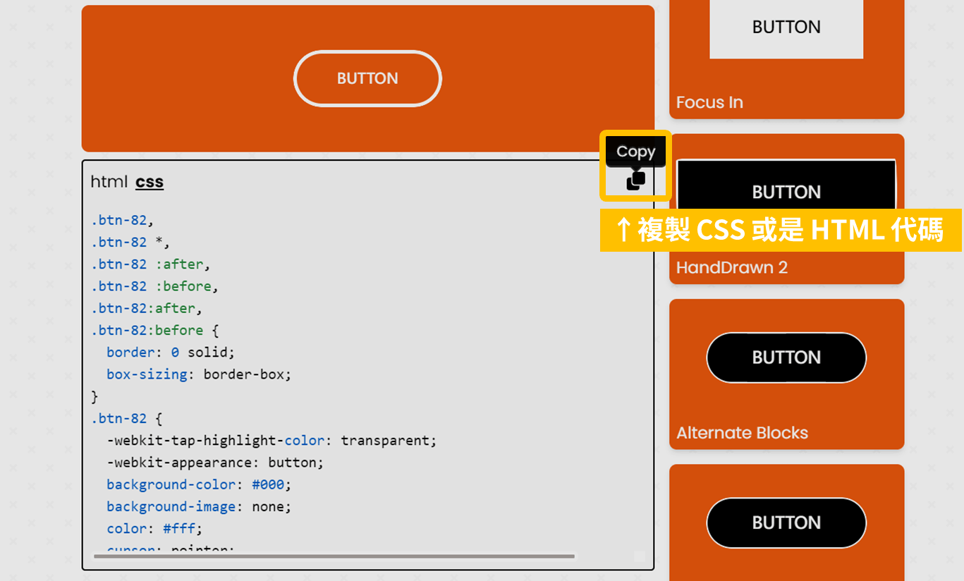 第三步:即可複製 CSS 或是 HTML 代碼。
