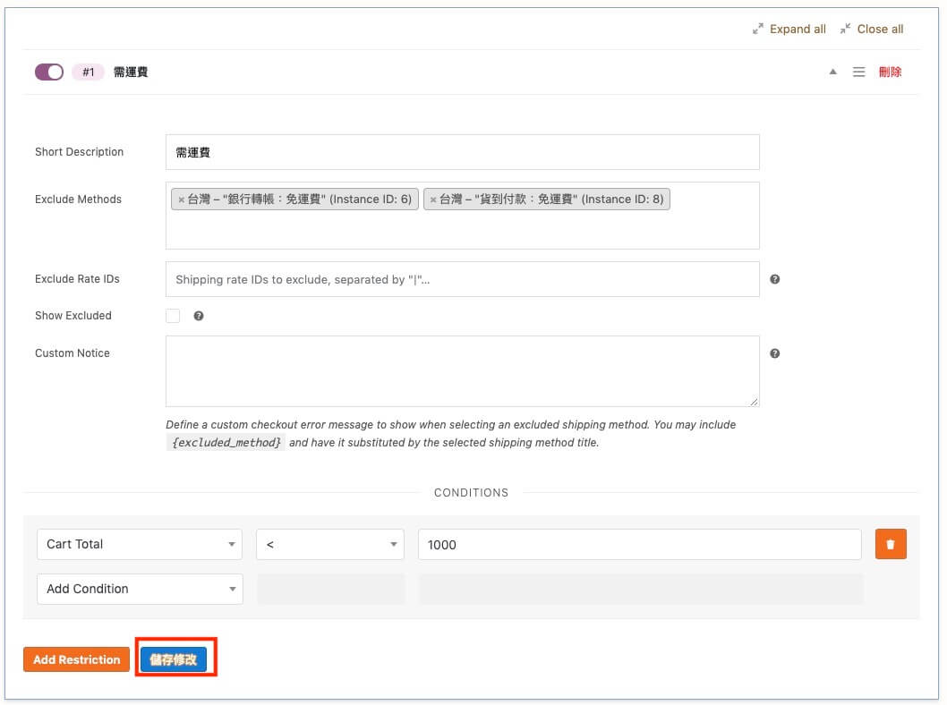 加入 WooCommerce 運送項目顯示條件