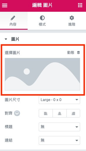 第二步:像畫面這樣,突然出現大圖像也不要驚慌,可以在樣式裡調整大小。