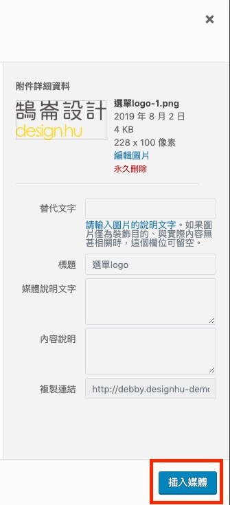 第四步:就會跳出媒體庫上傳圖片的畫面。