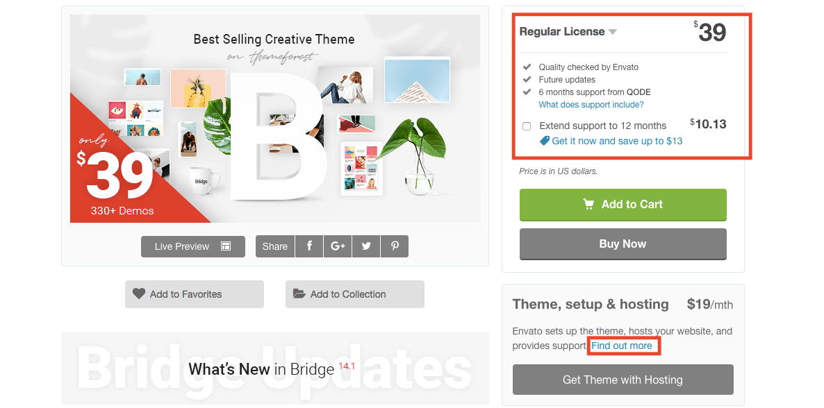 第二步:這個佈景主題基本功能的價位是美金 39 元,相對其他的佈景主題來說價位是較便宜,同樣也是有分半年及一年技術支援的兩種價格,以及主題定期更新。